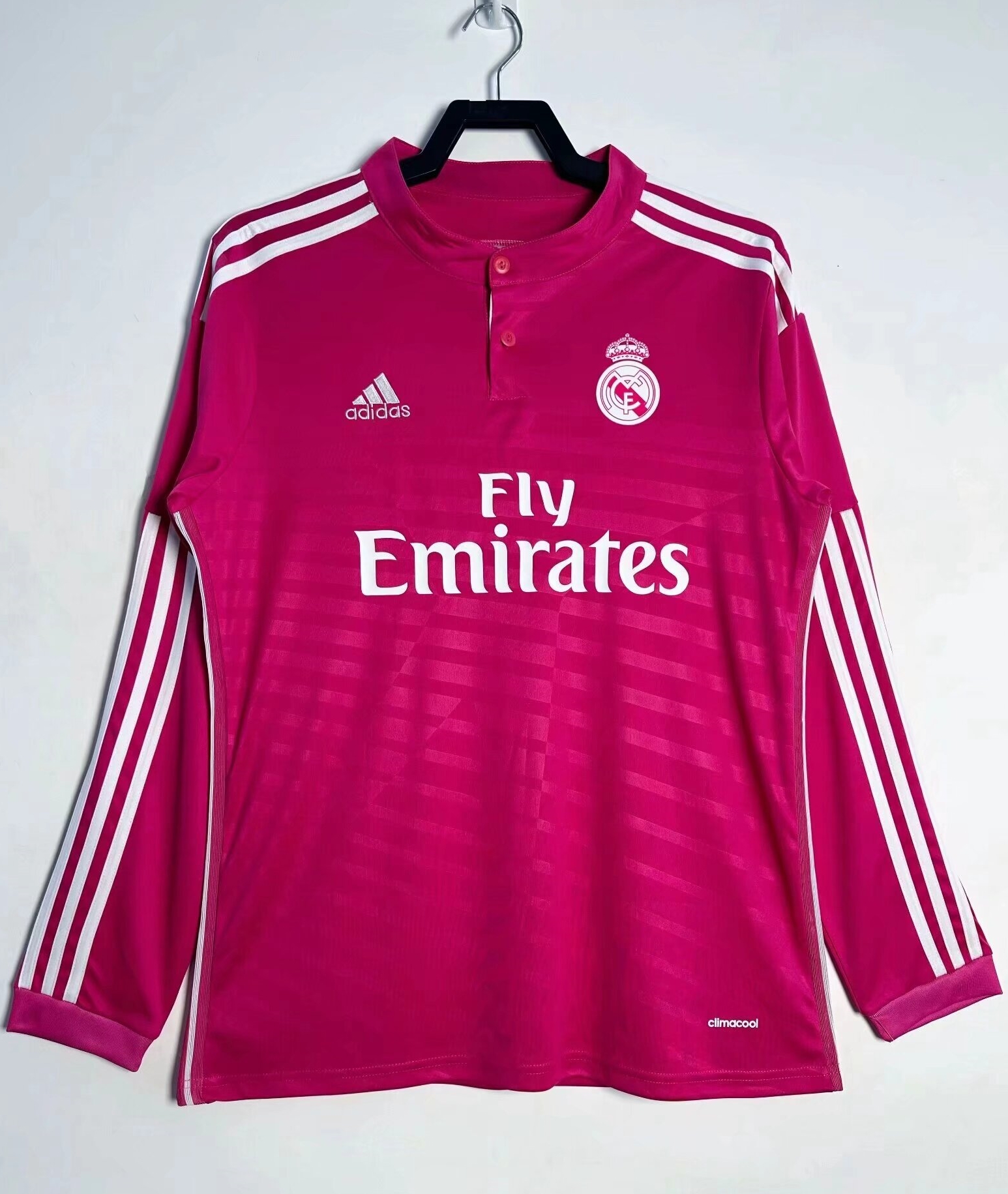 Home>La Liga>RMA>Retro Jerseys>2014-2015 RMA Away Pink Long Sleeve Retro Soccer Jersey